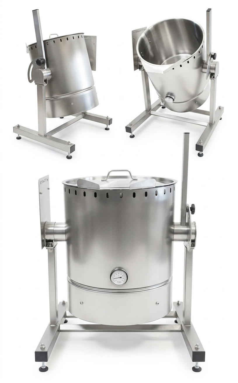 - Customizable configurations – optional add-ons available (wheeled base/height-adjustable legs, outlet valve, mixer attachment, cooling jacket).